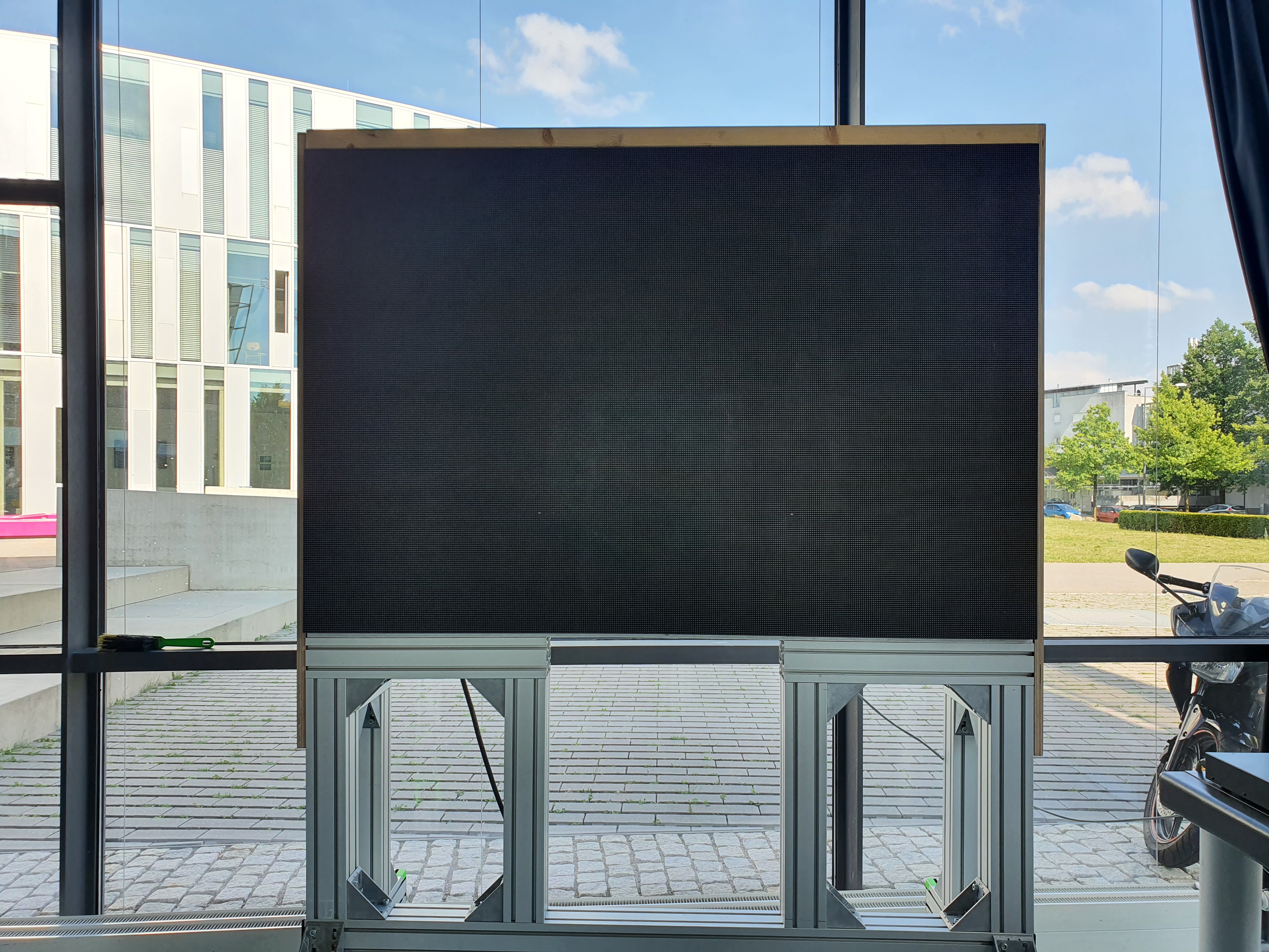 Der LED Teststand ist eine 3×2 Panel große LED Wand auf Rollen. Sie ist für Messungen und Tests an den Panelen sowie für Demonstrationszwecke gedacht.