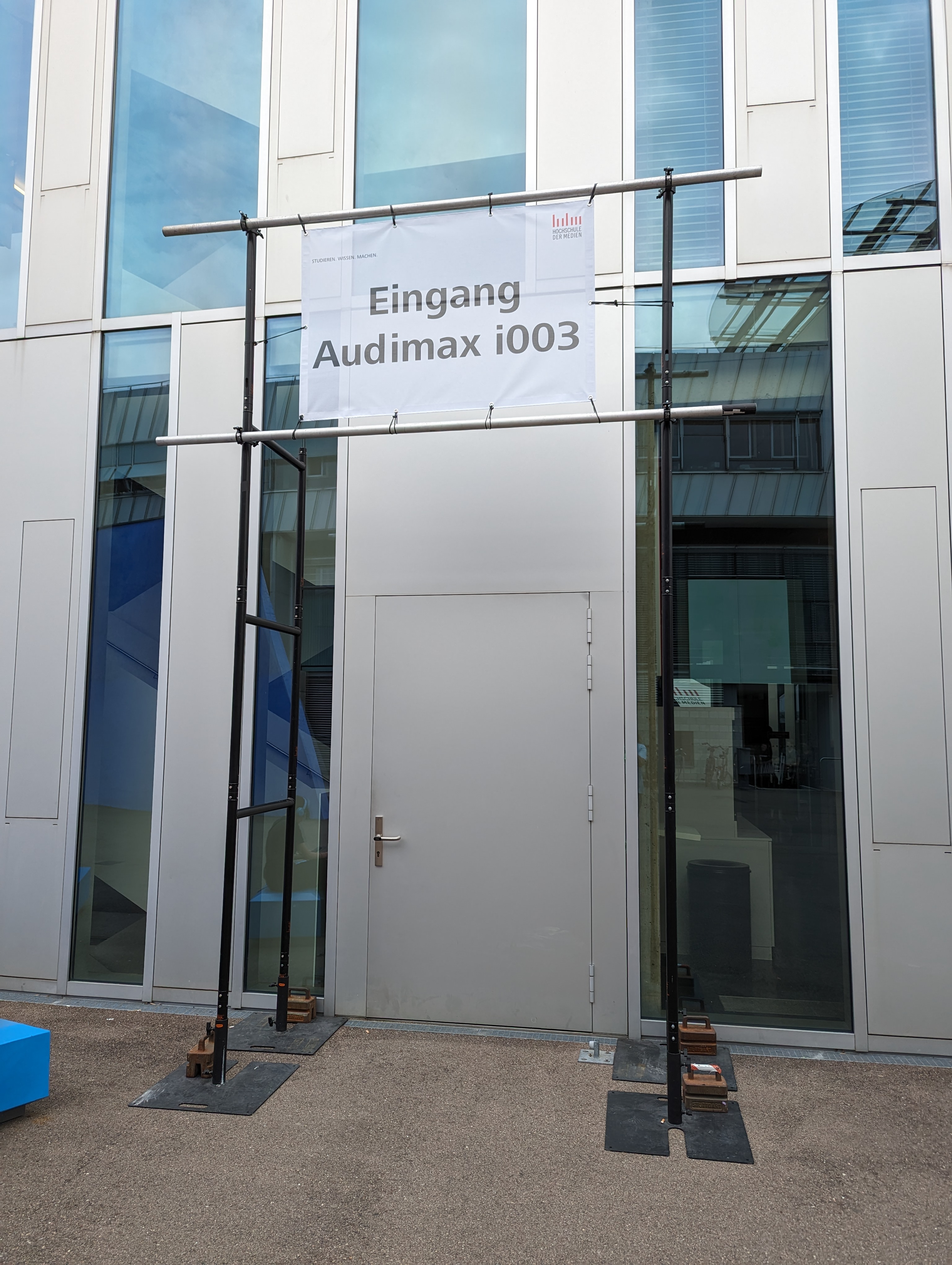 - 2x Ausdrucke DIN A3 für Wegweiser „Eingang Audimax i003 ←“